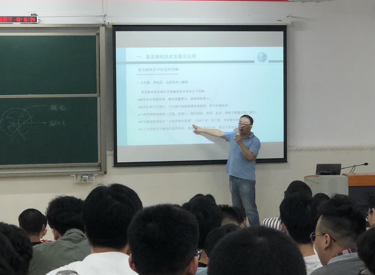 2019320日上午,电子信息与电气工程学院邀请了国家电网湖南检修公司鹅城换流站党支部书记、副经理孙鹏在11号教学楼208课室开展嵌入式教学,为学院2016电气工程及其自动化专业的学生们带来了一场题为《高压直流输电技术发展及应用》的精彩报告