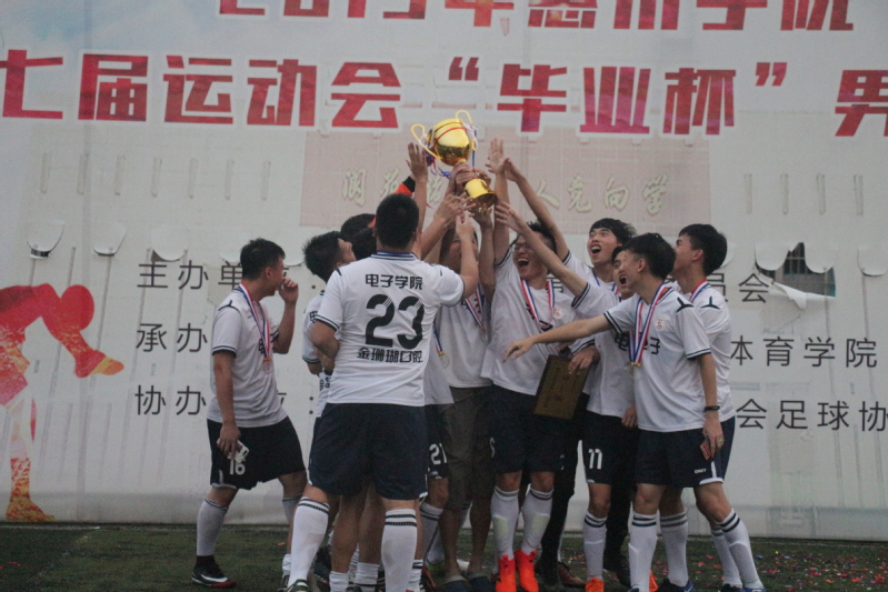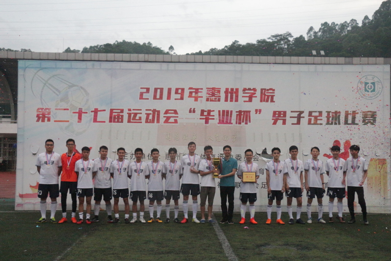 6月2日下午,惠州学院第二十七届男子足球赛决赛在田径场隆重举行。我院足球队不懈努力拼搏,以全胜的战绩闯进决赛,最终以1:0的优秀成绩力克经管学院,成功拿下惠州学院第二十七届足球赛决赛冠军,实现了足球联赛的三连冠。此外,球队还获得道德风尚奖,守门员曾育翔同学获本届足球赛最佳门将,共同谱写着团结进取,团结一心的华丽诗篇,展现了朝气蓬勃,永不言败的战斗豪情。