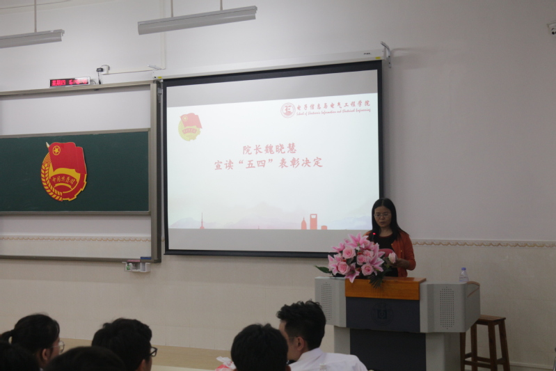 伴随着激昂的国歌声,大会正式开始。会议共为两个部分。第一部分是2019年“五四”纪念表彰大会。院长魏晓慧宣读了《关于表彰惠州学院电子信息与电气工程学院2019年“五四”先进集体、先进个人的决定》,她希望受到表彰的先进集体和先进个人再接再历,努力学习,扎实工作。同时,领导、老师为先进集体与个人进行了颁奖。李晓桐和李洁标分别代表获奖集体和个人上台发言,分享自己的收获和感悟,他们表示接下来会更坚定步伐、继续努力为集体、学院贡献自己力量。