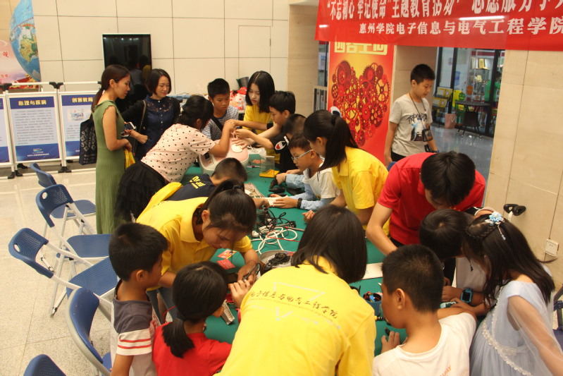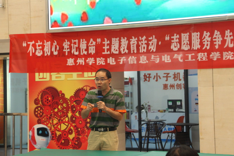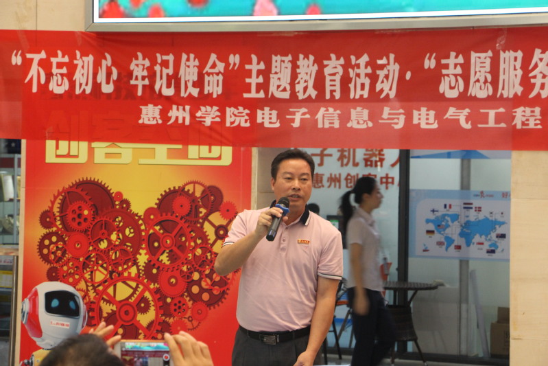 “义务维修服务队将于10月中旬进驻惠州市科技馆,为惠州市民维修小电器,宣传电子信息的科学知识……”10月20日上午,电子信息与电气工程学院2019惠州市科技馆爱心维修活动启动仪式在惠州市科技馆圆满落幕,学院将联合惠州市科技馆、好小子机器人研究中心,组织爱心团队利用周末,用一系列丰富多彩的志愿维修服务活动积极响应习总书记“弘扬奉献、友爱、互助、进步的志愿精神,坚持与祖国同行、为人民奉献,以青春梦想、用实际行动为实现中国梦作出新的更大贡献”的号召,用实际行动践行“不忘初心、牢记使命”主题教育。惠州科技馆馆长高杰、好小子机器人研究中心负责人唐宽平、活动指导老师林川博士、电子信息与电气工程学院党政领导班子、及20余名师生代表参加了启动仪式。