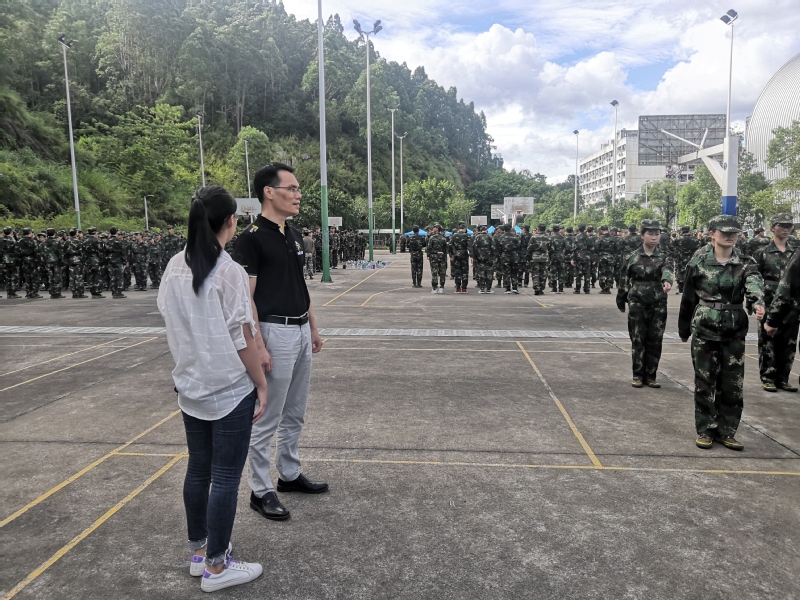 9月18日军训第二天,我院党总支书记谭润志来到金山湖体育馆旁训练场,关心新生军训情况。军训场上骄阳似火,但全体参训学生个个热情饱满,认真投入,反复进行着队列动作练习,为军训生活营造了一个完美开局。