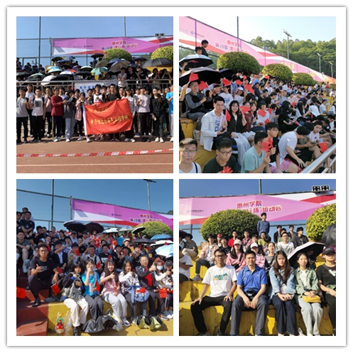前方运动运动员奋勇拼搏,观众席内我院学子亦激情澎湃,呐喊声一阵接一阵,为每一位运动员加油助威。在激昂的呐喊声中,运动员们迸发了激情与动力,也一次又一次的超越自我。赛场内外工作人员、志愿者一直兢兢业业,恪尽职守,以饱满的热情圆满地完成了赛事服务保障工作,为运动健儿的良好发挥做出了重要贡献。