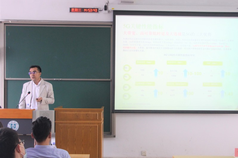 本次报告会由宋东教授主讲。第一个报告主题为“未来已来--5G行业”。宋东教授首先结合了聚飞光电有限公司发展历程,阐述了电子信息工程专业良好的就业前景,并从智慧交通、智能家居、智慧医疗、智慧能源等多个维度,详述了5G技术的快速发展以及对未来大众生活的深远影响。第二个报告主题为“2020年中国无人经济市场”,对无人经济的表现形式、发展历程、典型落地应用以及未来发展趋势做了详细阐述,指出了在无人经济应用场景不断延伸扩展的趋势下电子信息工程的专业优势,勉励同学们学好专业课,打好专业基础。