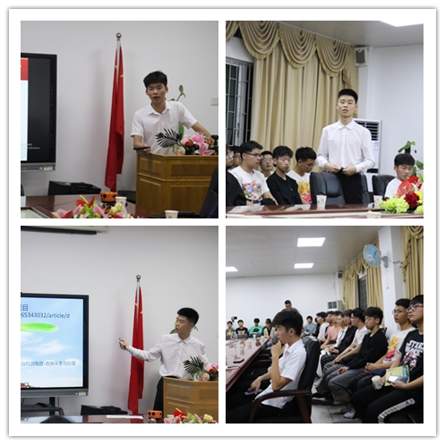 然后是2019年广东省电设一等奖获奖者罗文勇同学分享了参赛经历,他将自己的参赛历程分为赛前、赛中、赛后三个阶段。赛前要了解大赛规则并尝试做出过往大赛题目;赛中要团结协助制定方案,分工明确;赛后要总结比赛中的不足之处。比赛最重要的是对心态调整的技巧。
