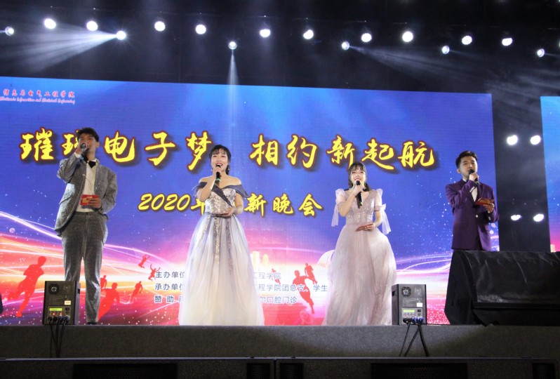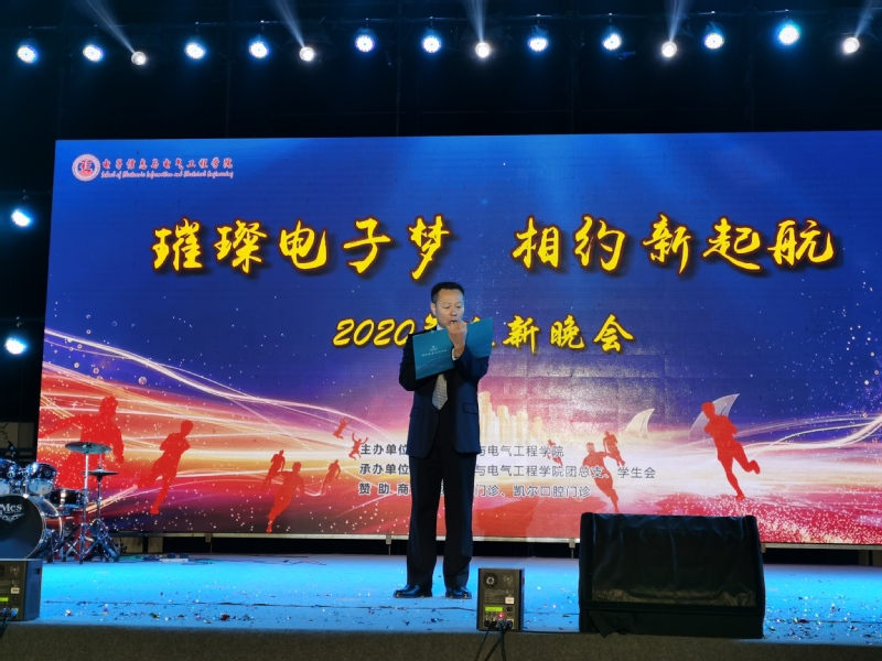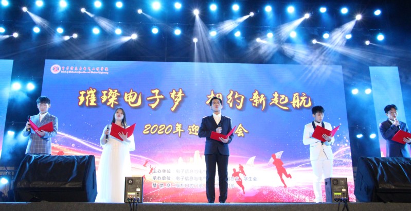 12月3日晚,由我院团总支、学生会主办,策划部承办的“璀璨电子梦,相约新启航”电子信息与电气工程学院2020年迎新晚会在音乐楼前广场隆重举行。电子学院新生相聚于此,满怀欣喜,欢歌载舞,给大家带来了一场视听盛宴。出席本次晚会的领导有党总支书记谭润志、院长魏晓慧、党总支副书记段延喜、副院长闵国新、副院长龙达峰,电气工程系主任徐德明,辅导员老师以及新生班主任等。现场观众高达700余人,寒风瑟瑟,也依然无法抵挡同学们的热情。