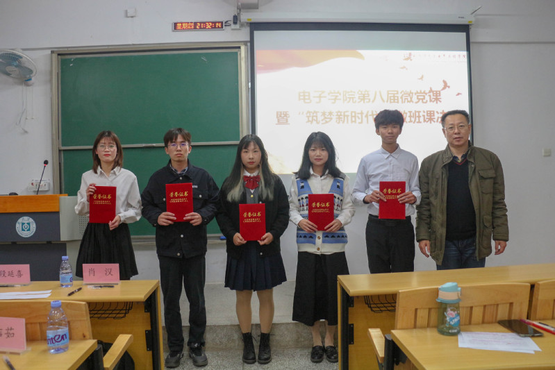 为了深入学习贯彻习近平新时代中国特色社会主义思想,引导青年学生进一步坚定理想信念,培养学生坚韧不拔、艰苦奋斗、积极向上的优秀品质。12月17日,电子学院第八届微党课暨“筑梦新时代”微班课决赛在旭日楼405教室举行,党总支副书记段延喜、辅导员肖汉、文冰和陈梦婷,及学生党支部委员、主席团成员出席,参赛选手和学生代表参加本次决赛。