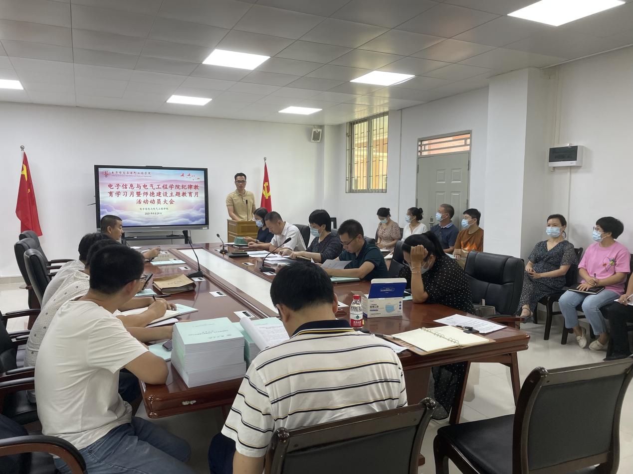 9月29日,电子信息与电气工程学院在电子楼205会议室召开了2021年纪律教育学习月暨师德建设主题教育月动员大会,会议由学院党总支副书记段延喜主持,全体教职工参加会议。