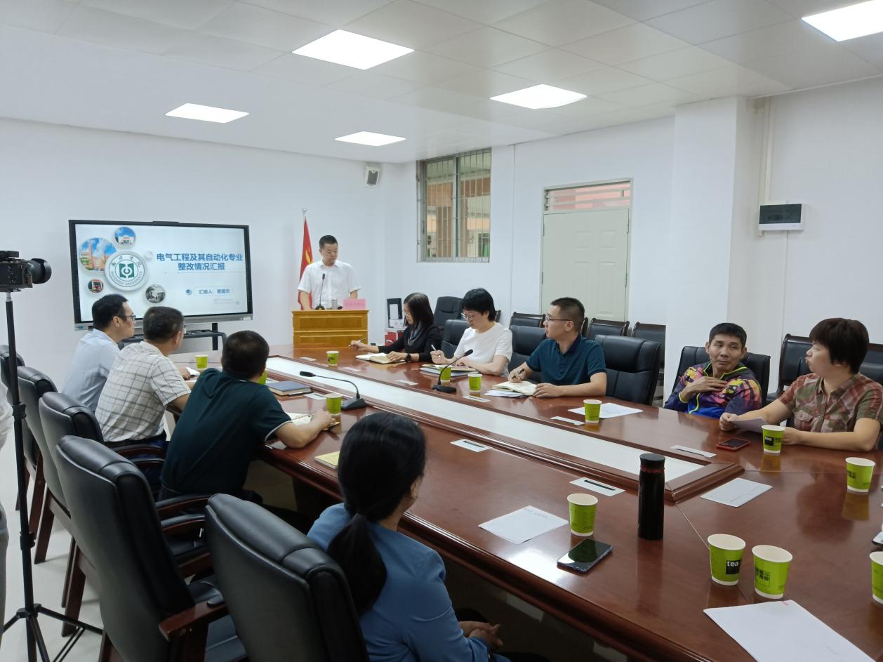 会议第一阶段,针对IEET认证委员会提出的电气工程及其自动化专业整改意见,曹建忠以PPT展示讲解的方式,对3年来专业的整改措施及成效进行了汇报。参会的领导和老师认真聆听整个报告并做详细记录。