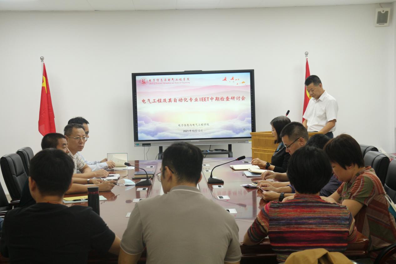 10月13日,电子信息与电气工程学院IEET专业认证中期检查报告会暨专业建设推进会在电子楼205会议室举行。作为电气工程及其自动化专业负责人,曹建忠副校长亲临会议,参加会议的还有电子学院谭润志书记、魏晓慧院长,段延喜副书记,徐瑜副院长,闵国新副院长、龙达峰副院长和该专业全体教师。