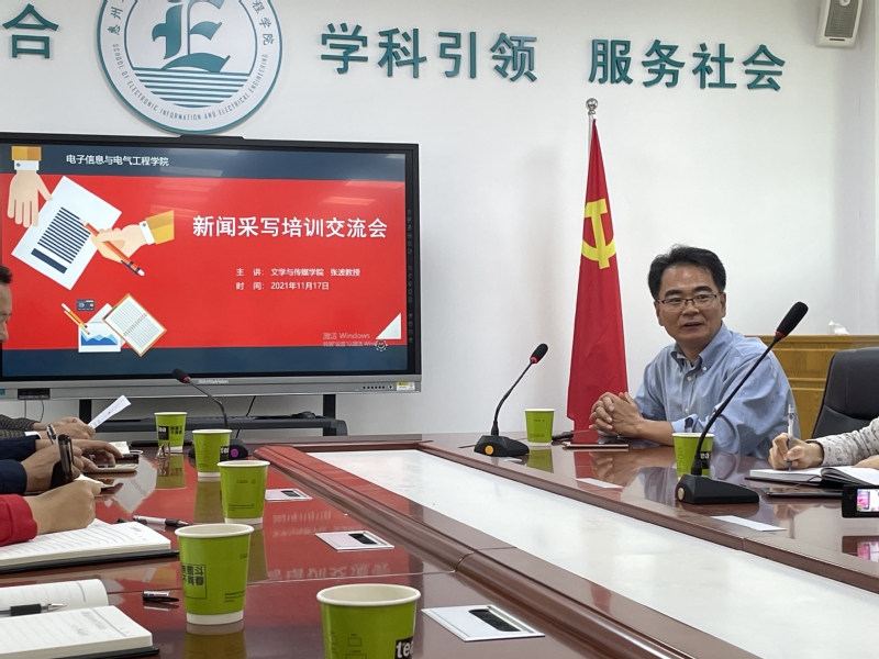 为提升新闻宣传工作水平,11月18日下午,我院于电子楼205会议室召开新闻采写培训交流会,文传与传媒学院张波教授作专题讲座。我院党总支副书记段延喜、副院长闵国新、办公室主任王丹云、各系教师代表、全体辅导员、教务员、学生代表等参加学习。