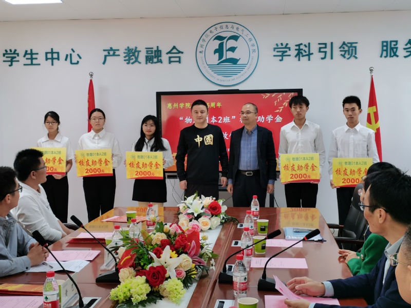 01物理本2班的校友代表为受助学生颁发校友助学金。21物理2班曾雪婷同学作为受助代表发言。她表示会做一名成绩优秀,品行端正的学生,以此作为她对社会、对学校和对师兄师姐们的回报,并决心尽自己能力去帮助身边需要帮助的同学。