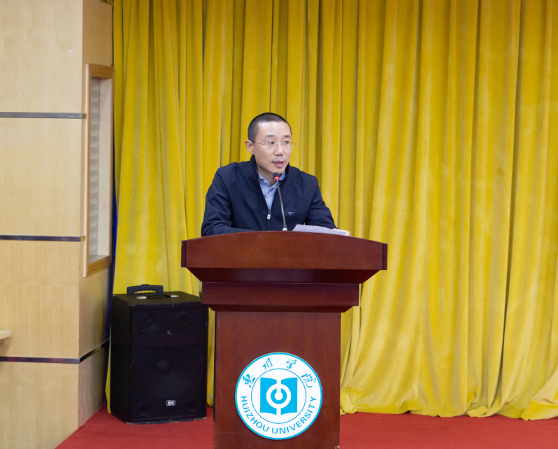 纪检监察室黄欣副主任致辞。他表示本次比赛是学校纪律教育月主题活动之一,旨在通过知识竞赛将严肃的教育内容与活泼的教育形式相结合,促使广大师生坚定宗旨意识、涵养个人品格、强化纪律意识。同时,希望更多的同学能够积极参加学校的纪律主题教育活动,成为守纪律、懂自律的新时代青年大学生,将廉洁自律内化为自我成长的精神动力和价值指引。