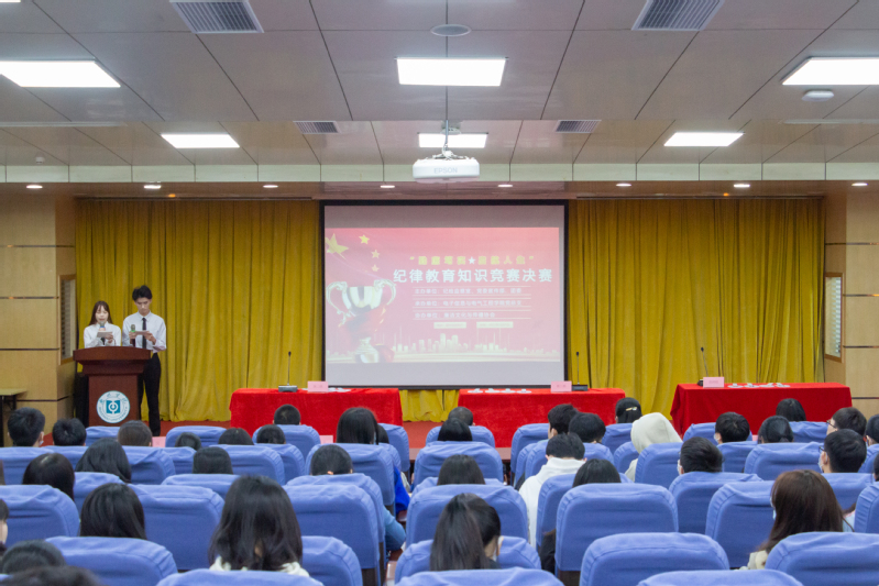 12月1日晚,由纪检监察室、党委宣传部、团委联合主办,电子信息与电气工程学院承办的2021年“勤廉笃实,启航人生”纪律教育知识问答竞赛决赛在图书馆学术报告厅举行。纪检监察室黄欣副主任、首小琴科长、肖汉老师、陈昭艳老师,党委宣传部陈德玺老师,电子学院辅导员杜文星出席比赛。