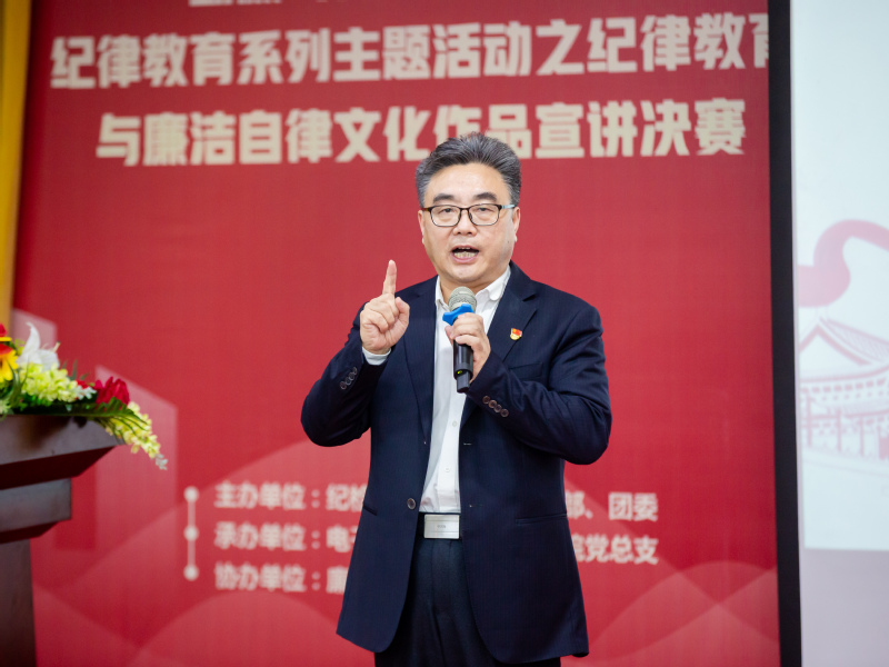 选手们宣讲结束,马克思主义学院李文珊教授代表评委对全体参赛选手的现场宣讲内容、技巧等进行了精彩点评。他指出,选手们选题准确、主题鲜明,能够理论联系实际,让抽象的道理具体化,寓情寓理,具有很强的指导性和针对性。希望师生们自觉做廉洁自律最坚定的弘扬者、实践者、传播者,进一步坚定理想信念。