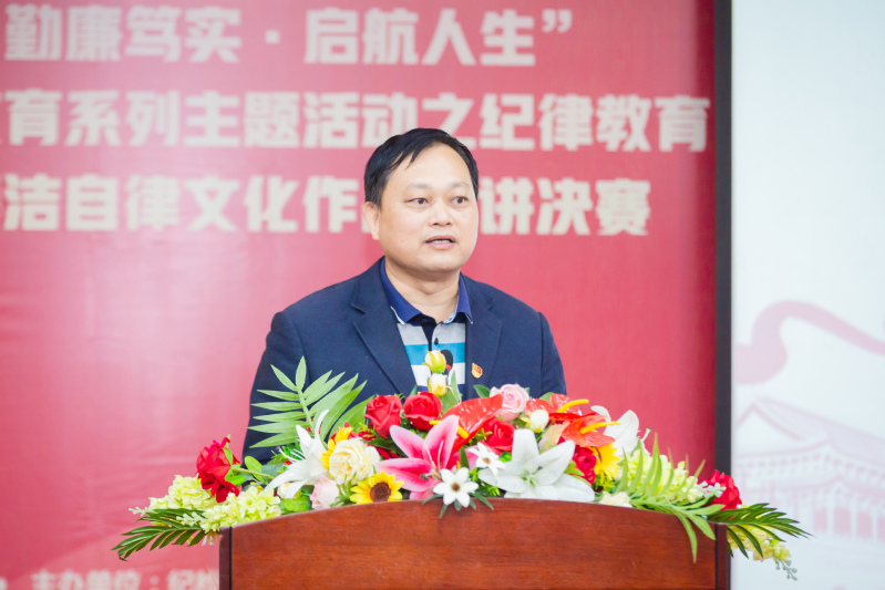 纪委副书记、纪检监察室主任邬强致辞。他充分肯定了此次活动的重要意义,对校园廉洁文化建设提出了明确要求:一是深刻领会习近平总书记关于反腐倡廉的重要指示精神,加强廉洁理论学习,武装头脑;二是做反腐倡廉的践行者,增强党纪国法观念和拒腐防变的能力,要强化组织意识、纪律意识和责任意识;三是做反腐倡廉的宣传者,通过言传身教,带领身边人严守纪律底线。