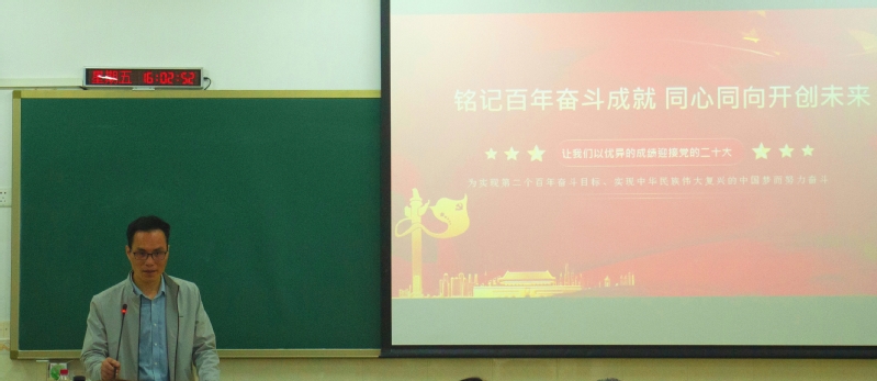 谭润志书记结合国内外新冠肺炎疫情实时数据、美英加澳等国打压中国并逐渐上升为国家战略等时代背景,深入阐述了十九届六中全会在重要历史关头召开的重大意义,并围绕中国共产党的百年奋斗重大成就和历史经验等方面对十九届六中全会公告内容进行了详细解读。谭书记要求深入学习习近平总书记关于疫情防控工作的重要指示批示精神,认真贯彻省、市、学校的工作要求,做好自己健康第一责任人。