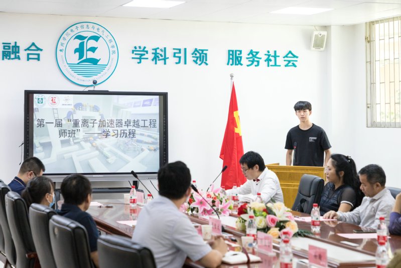 卓越班班主任助理林宏翔老师在结业仪式上汇报了第一届重离子加速器卓越班教学活动情况和卓越班的办学成果。经过为期三学期的教学实践活动,重离子加速器卓越班吸引越来越多的同学进入加速器领域升学、就业。