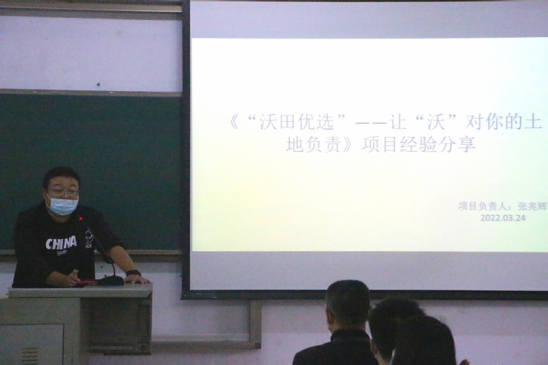 往届优秀参赛项目《“沃田优选”——让“沃”对你的土地负责》的负责人张兆辉同学就赛道区别、项目的选题、商业计划书的撰写等进行了经验分享。