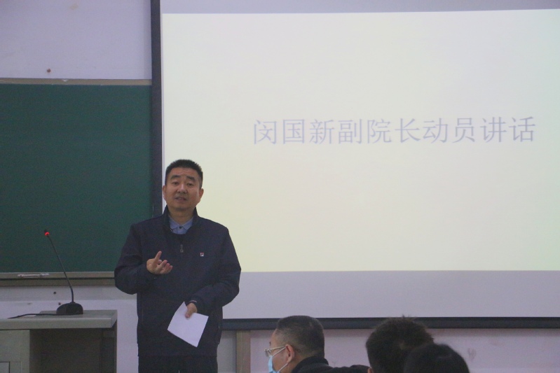 闵国新副院长在大会上作动员讲话。闵国新提到了互联网+打磨的过程既是对个人认知、能力、思维、影响力等多方面的锻炼,有利于同学们将来走向社会,动员各年级班长推动工作,做好宣传,积极开展互联网+主题班会。
