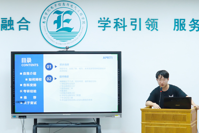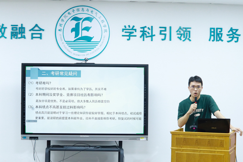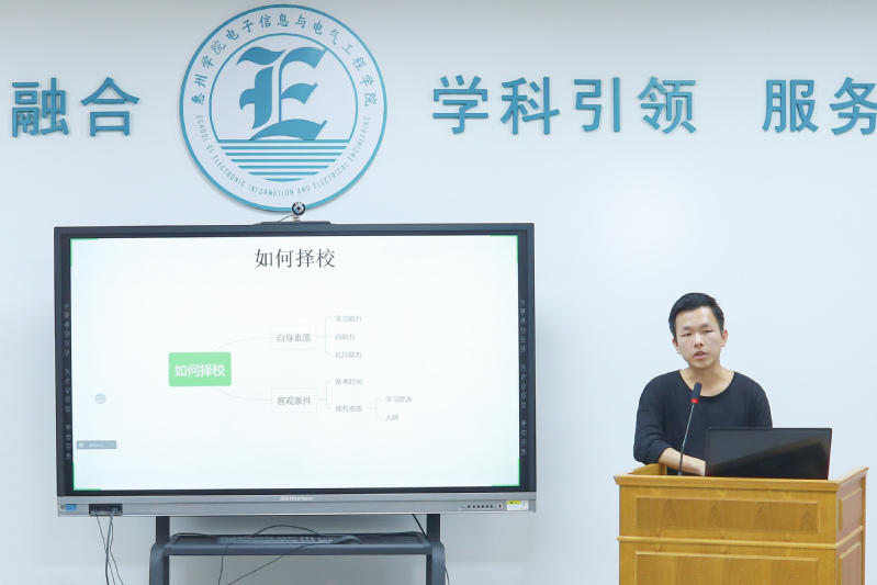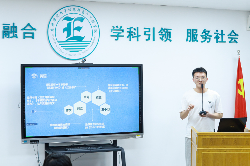 受邀参加本次分享会并先后发言的学生有18电信1班柳剑锋(考取湖南师范大学)、18电信工程2班夏文涛(考取汕头大学)、18电气4班官依良(考取广东工业大学)、18材料1班林坚锋(考取广东工业大学)、18物理学1班张洁婷(考取广州大学)、18机电1班吴加豪(考取西南科技大学)等6位同学。他们从各自的考研动机、学习方法、择校经验、资料准备、时间安排、计划制定等方面,向同学们分享了自己的成功经验。大家一致认为,备战考研要加强专业知识学习,夯实公共学科基础,加强时事政治的学习,丰富英语阅读能力。同时,还强调了保持良好心态对于考研的重要性。