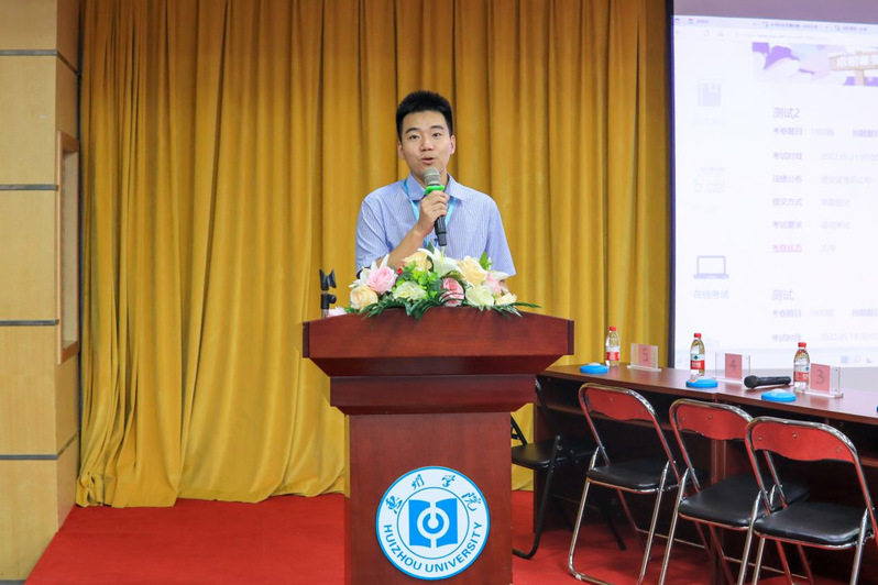 决赛前杜建聪老师代表主办方致辞。他表示本次比赛增强科学认识,培养同学们对事物的观察能力,增强同学们的创新精神。杜老师对同学们提出三点希望。第一,深刻领会习近平总书记对新时代青年的期望和重要指示精神,加强学习,用科学知识武装头脑;第二,做科学普及的践行者,加强知识运用;第三,做科学普及的宣传者,言传身教,让科学知识普及到更多人身边,带领身边人学习科学知识。