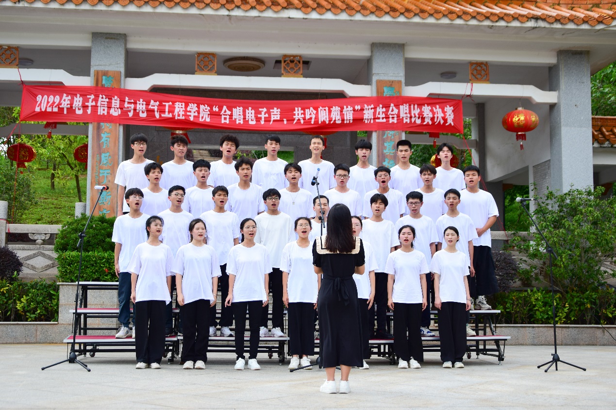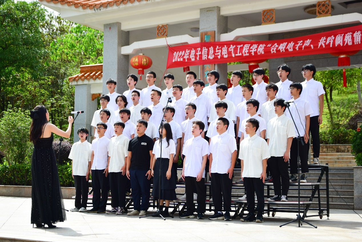 为进一步提升2021级新生班级的凝聚力与向心力,激发爱国爱校情怀,提升艺术修养,学院于5月29日在丰湖牌坊举行“合唱电子声,共吟阆苑情”新生班级合唱比赛。音乐学院刘芷荞、诸冬怡、邓淑平三位同学担任比赛评委,学院辅导员裴琳琳老师以及新生班主任代表艾静、黄耀、陈梦婷、刘海生等老师一同观看了本次比赛。