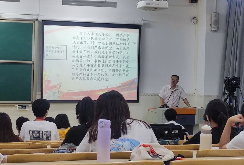 2022年5月24日,电子信息与电气工程学院在科技楼B楼举行“学习贯彻习近平总书记在庆祝中国共产主义青年团成立100周年大会上重要讲话精神”为主题的第三期青马工程培训班主题团课暨班级团学干部培训会。学院副书记段延喜授课,培训会由团总支副书记邓粤辉主持,辅导员文冰、院青马班全体成员、各班团支书及班长参加本次培训。