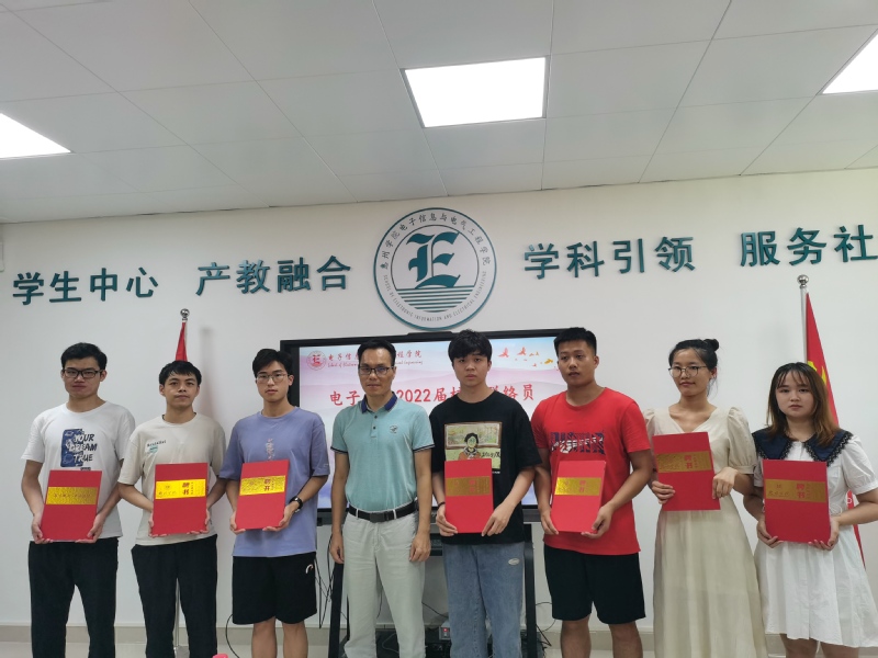 余锋宣读了《电子信息与电气工程学院关于聘任2022届毕业生校友联络员的决定》及校友联络员工作职责。谭润志为18名毕业生校友联络员颁发聘书。