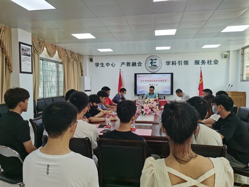 6月23日下午,电子信息与电气工程学院2022届校友联络员聘任大会在电子楼205会议室召开。学院党总支书记谭润志、副书记段延喜、余锋出席,辅导员及2022届 18 名毕业生校友联络员参加会议。聘任大会由段延喜主持。