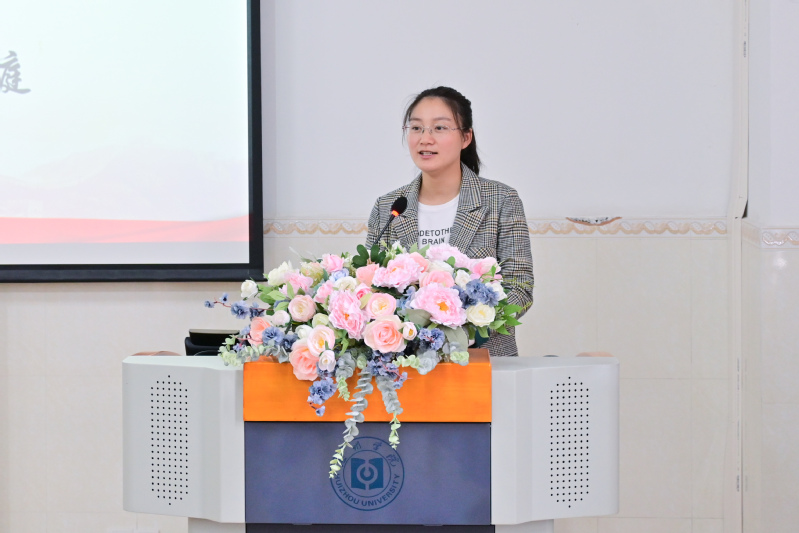 院队代表黎莎同学汇报了我院学生在校运会中取得的优异成绩,并对运动健儿们表达了敬佩之情及在今后的工作和学习中继续发扬体育运动精神。