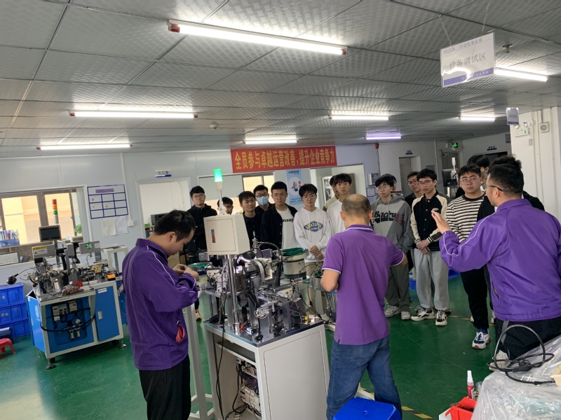 随后,公司人员分批带领同学们参观公司的办公区域、生厂车间、研发中心、食堂和宿舍等,对每个部门的职能作了详细介绍。