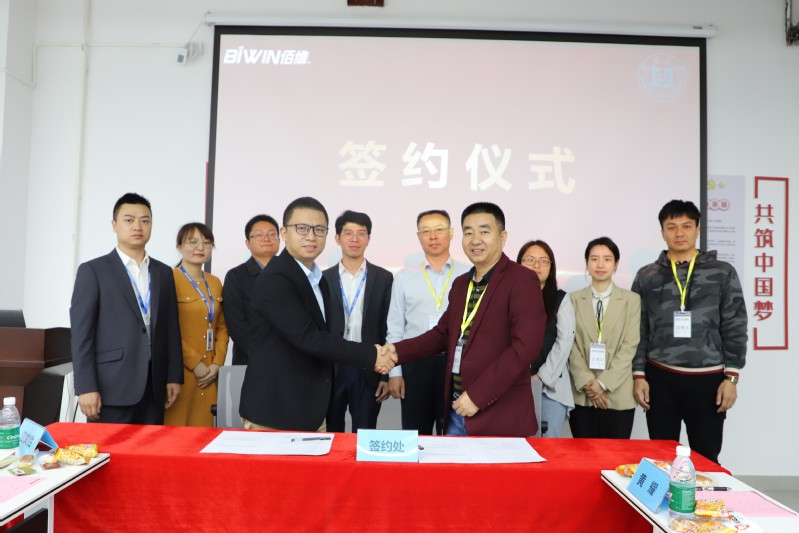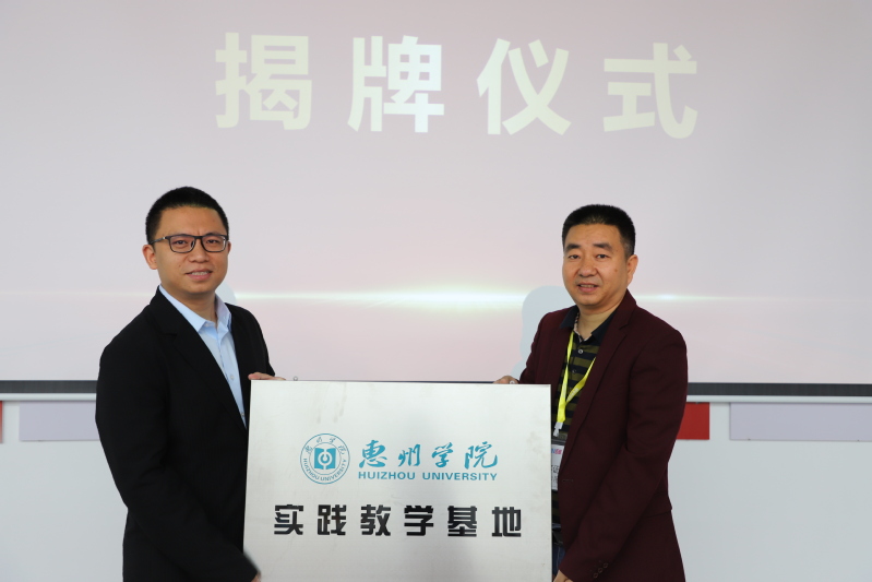 闵国新副院长与惠州佰维总经理刘昆奇进行实践教学基地签约,并进行“惠州学院实践教学基地”牌匾交接。
