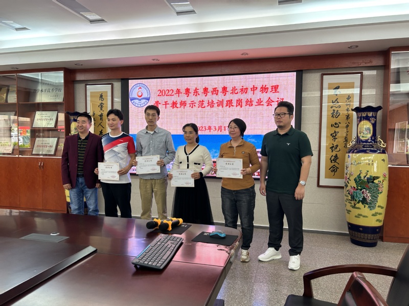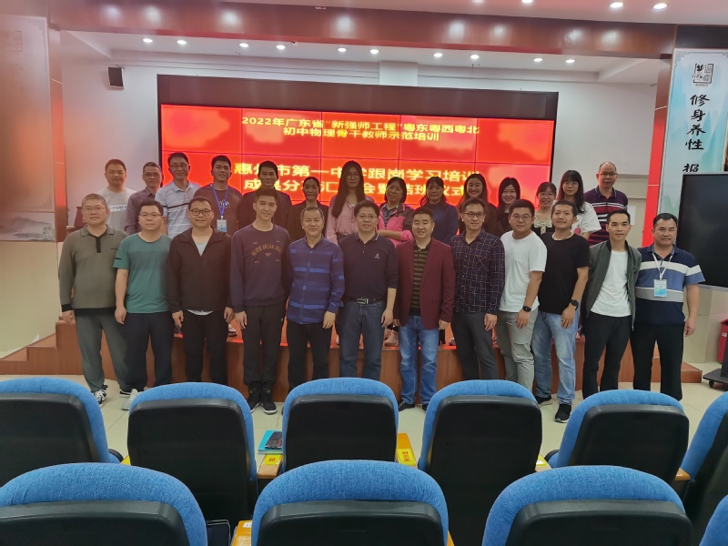 2023年3月17日,由我院承接2022年广东省新强师工程粤东粤西粤北地区教师全员轮训(初中物理骨干教师示范培训),顺利、圆满地完成三个阶段培训任务,分别在惠州第一中学、惠州第五中学、惠州第八中学举行结业典礼。我院副院长闵国新、徐瑜,物理系主任谢卫东,物理专业课教师杜娟老师、何婉芬老师,培训班班主任罗志伟老师、杜文星老师、裴琳琳老师、黄耀老师和来自全市各县区的100名初中物理教师分别在三所跟岗学校参加了结业典礼。