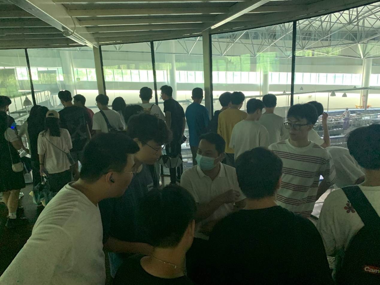 在生产基地负责人的带领下,师生参观了百岁山的生产线,负责人详细介绍了基地整体概况、生产流程、技术实力、管理特色等情况,同学们近距离了解了企业工作环境及岗位工作流程;企业人事经理与学生展开深入交流,详细介绍了企业的技术优势、发展前景、企业文化等,激发了同学们对专业学习和就业的热情。