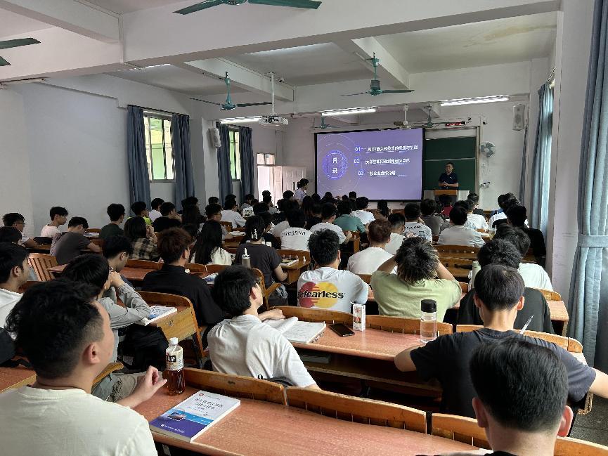 课堂上,牛乐乐从人工智能、物联网所需技术、嵌入式系统技术、未来产品状态、大学规划和定位五个方面,与同学们分享了自己的工作经历经验和独到的个人见解。牛乐乐结合后疫情下部分企业状态,具体讲述了从事电子相关专业人员需要做的6个方面的技术准备,引导同学们做好人生规划,要以终为始、善始善终,树立结果导向,认清社会发展趋势,做好职业定位和规划,最大限度发挥好专业优势。