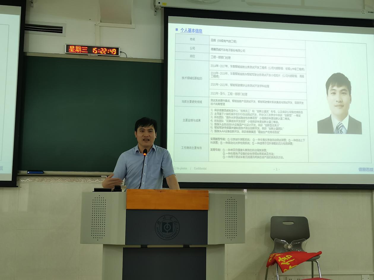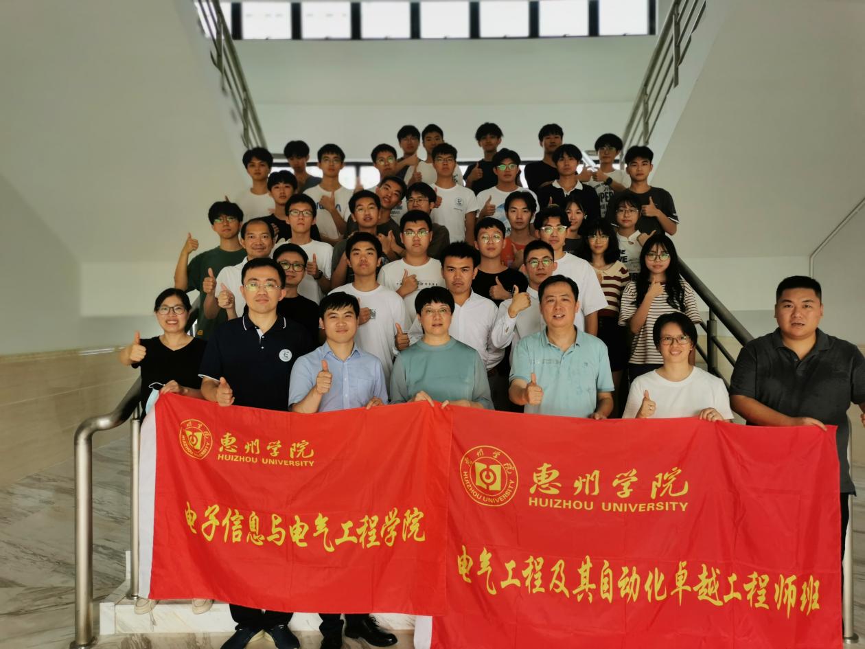 本次活动共有三大阶段。第一阶段,2019级学员进行成果与经验分享,2019级学员分别从智能微电网、智能车、人工智能及智能制造三大实验室为21级学员系统地讲解了实验室内容与成果。第二阶段,校友德赛西威工程一部巫辉经理以个人经历和个人见解为电气卓越班分享社会经验,并对电气卓越班寄予厚望。第三阶段,电气卓越班进行卓越班班旗授旗仪式,接着由2021级学员代表讲话,他表示,21级学员将会在电气卓越班大家庭里努力学习专业知识,争取取得更大成就。最后,2021级电气卓越班成立,参会师生、校友于旭日科技大楼一楼进行合影留念。