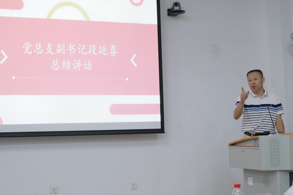 学院院党总支副书记段延喜总结讲话,段书记对此次分享会做出肯定,并对分享的四位优秀代表进行表扬鼓励,希望他们继续努力、奋发图强,同时希望他们能够在更多班级中为同学们分享自己的优秀经验。最后希望所有同学继续努力学习,将来能够为国家为社会贡献自己的一份力量。