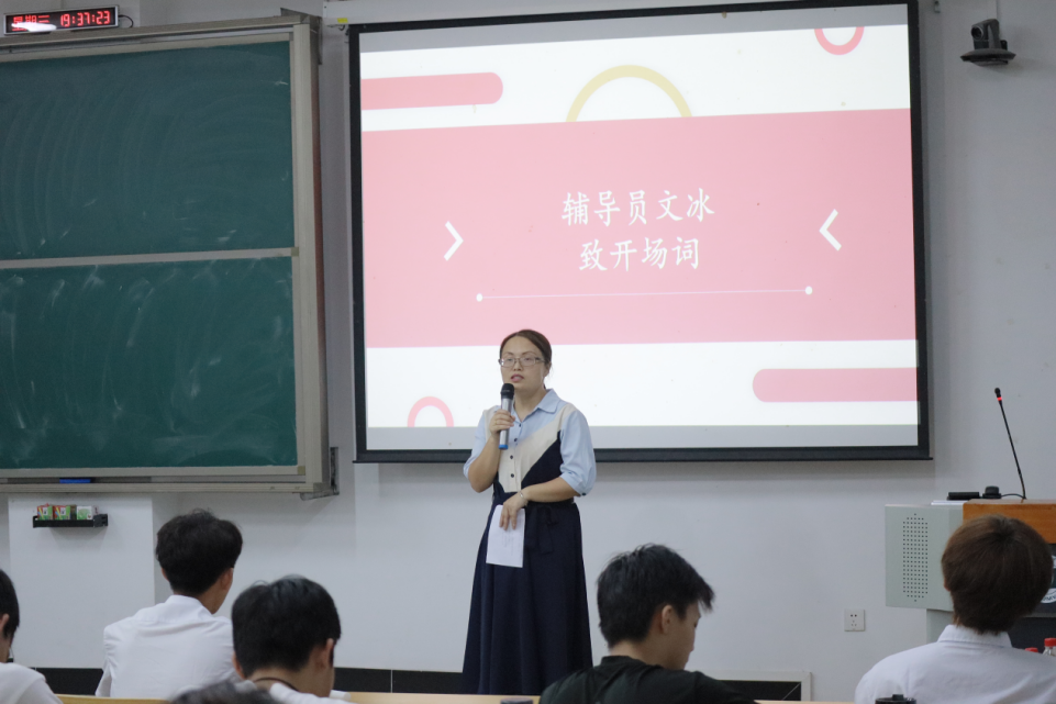 会议伊始,辅导员文冰老师致开场词,结合分享会背景、目的宣讲了有关资助政策,鼓励同学们奋发向上。