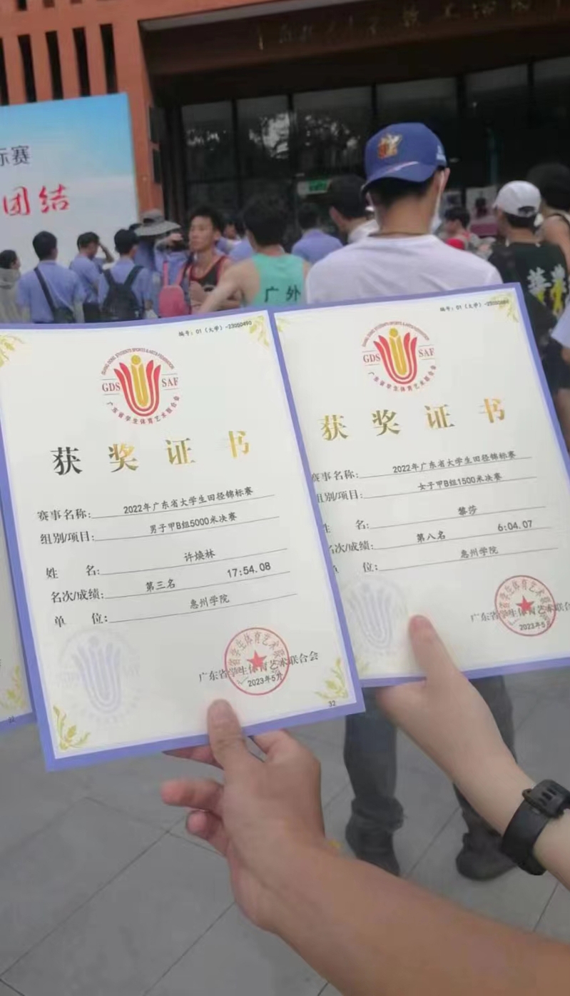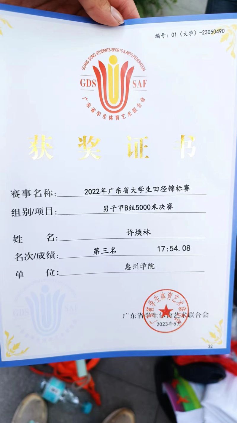 长风破浪会有时,直挂云帆济沧海。中长跑想要取得好成绩没有捷径,只有磨练自己的意志和不断的锻炼,争取更优异的成绩。最后,感谢我们田径队的潘其东教练,带领着整支田径队,辛苦教练了!还要感谢一下给我加油和帮助过我的队友和退役的师兄师姐们,是他们用乐观的心态教会了我如何对待生活,如何对待田径训练。明年我打算还继续参赛,为了惠州学院争光!