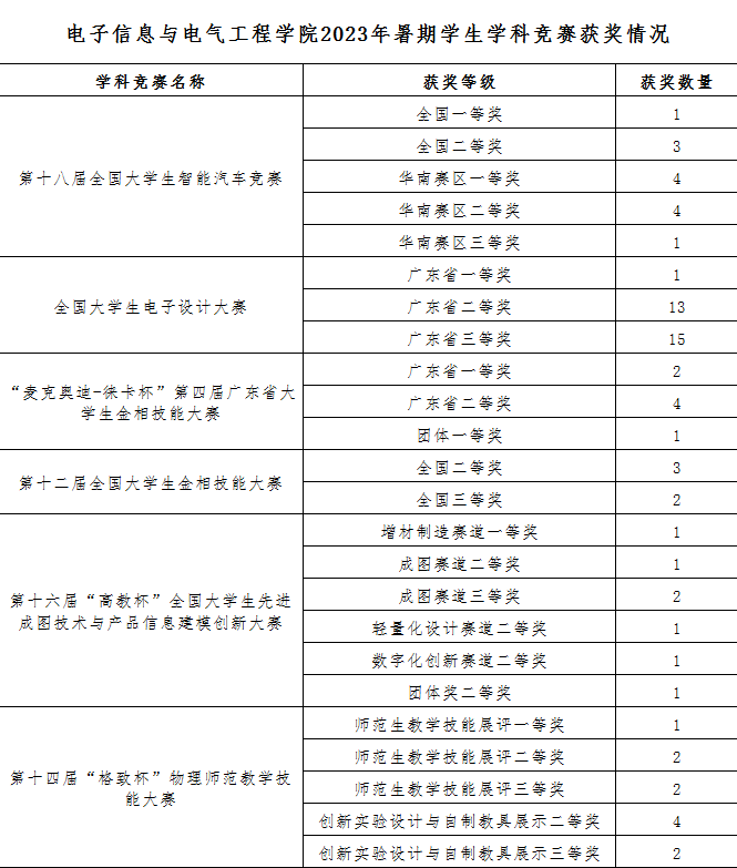 今年暑期,我院有200余名学生留校参加了全国大学生智能汽车竞赛、全国大学生电子设计竞赛、全国大学生先进成图技术与产品信息建模创新大赛、全国大学生金相技能大赛、“格致杯”物理师范技能大赛等全国及省级赛事,共荣获国家级奖项26项,省级奖项44项。