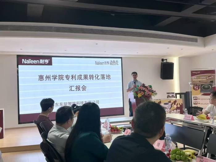 广东东厨智能科技有限公司是基于“惠州学院动态加热技术发明”成果转化而成立的企业。汇报会上,王定庚老师详细介绍了该专利技术从研发到与企业合作落地的全过程。该项技术针对传统感应加热技术存在的发热不均匀、温度过度集中等痛点,技术团队依托惠州学院“惠州智能绿色特种电源技术重点实验室”,历经十余年科研积累,突破性研发出“智能动态感应加热技术”,成功解决了上述难题,并申请多项专利,解决了生产难题,获得显著的经济效益。