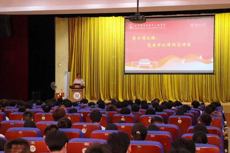 谭书记对新生提出三点殷切希望:其一,要志存高远,树立远大理想,深刻领悟 “两个确立” 的决定性意义,铸牢听党话、跟党走的思想根基,以理想信念为人生精神支柱;其二,要重视身心健康,主动提升人际交往能力,结交良师益友,积极参与体育运动,以强健体魄支撑未来学习、工作与生活;其三,要勤学善思,精进学业,他特别提醒电子类专业课程难度大,要在最能吃苦的年纪踏实学习,勿忘父母厚望,不负青春韶华。