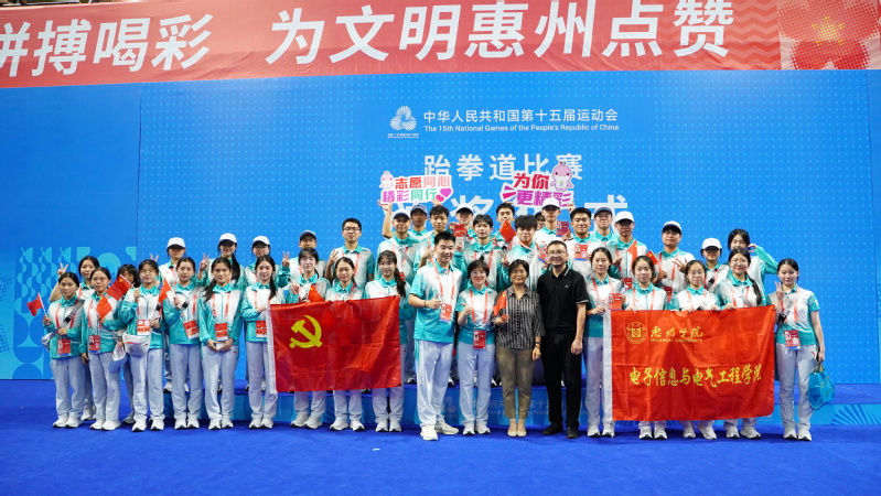 近日,第十五届全国运动会跆拳道比赛在惠州体育馆圆满落幕。电子信息与电气工程学院学生党支部党员志愿者化身“小海豚”,积极投身赛事志愿服务,凭借扎实的专业技能出色完成技术保障与服务工作,以实际行动诠释青年党员的责任担当。