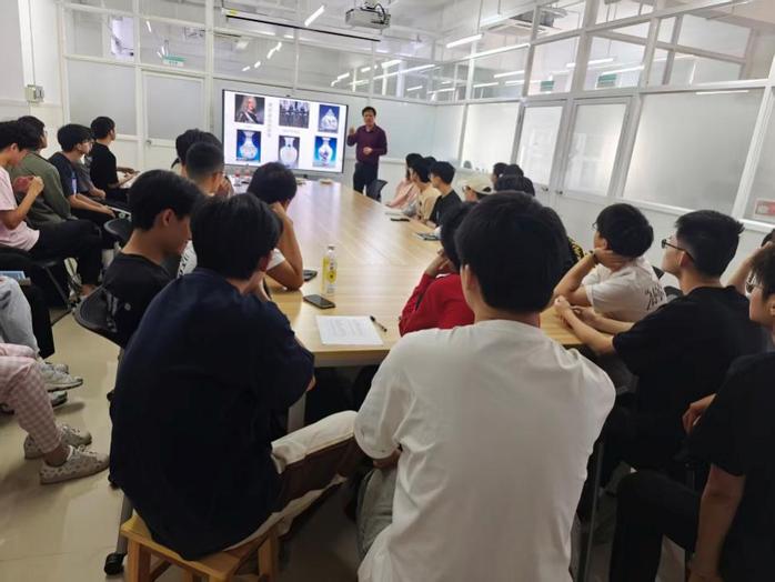 在理论课环节,王云鹏会长首先向学生们介绍了我国陶瓷的发展历史以及个人的从业经历,然后展示了部分的获奖泥塑作品。