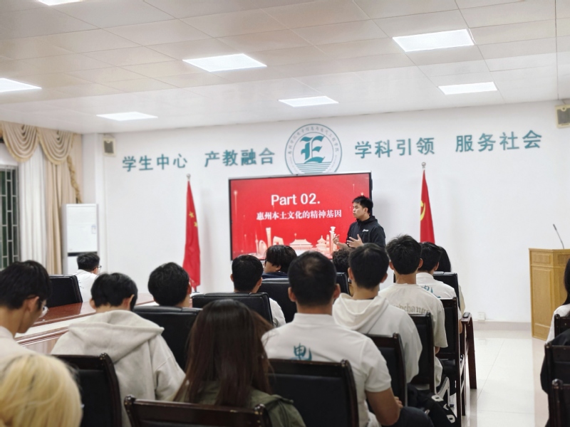 刘海生老师应邀主讲,主题为《文化自信,薪火相传——惠州本土文化对青年使命的思考与实践》。 刘海生老师从习近平总书记相关论述切入,深入阐释文化自信作为“更基础、更广泛、更深厚的自信”的核心内涵。他以中华文明绵延不绝的历史奇迹,以及当代航天、5G等领域的技术突破为例,生动论证了坚定文化自信的重要性。