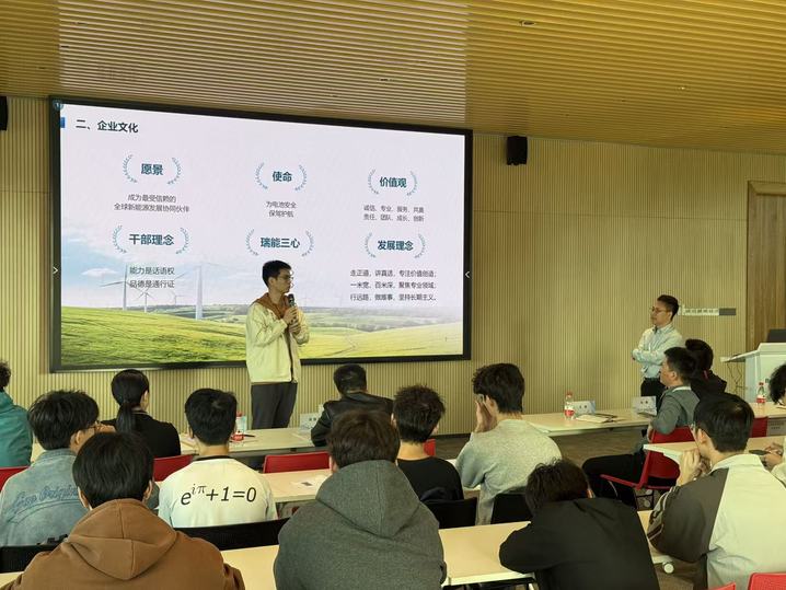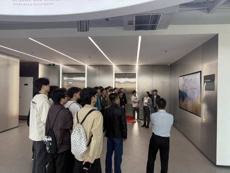 在瑞能股份相关负责人的引导下,师生一行先后参观了企业展厅。瑞能股份作为国内领先的新能源电力电子设备制造商,专注于储能系统、充电桩、智能电网等领域的技术研发与产品创新。师生们直观感受到企业的发展理念,对瑞能股份在新能源赛道的领先地位及行业前景有了更深刻的认识。