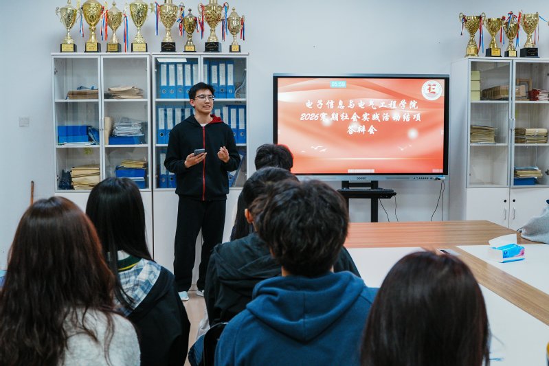3月11日下午,我院于电子楼210会议室举行2026年寒期社会实践活动结项答辩会。团委书记杜文星、辅导员黄耀、团委学生骨干及学生代表参加会议。